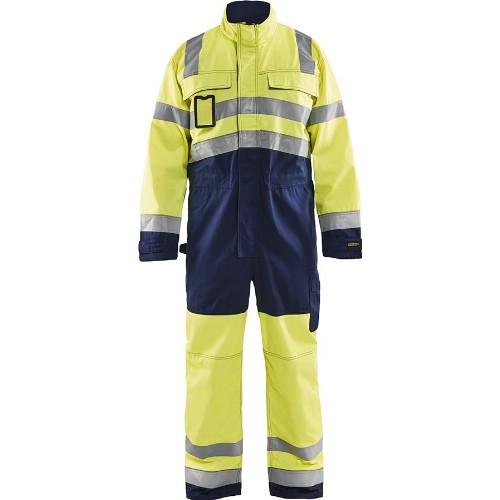 Front med glidelås, vindlås og hakebeskyttelse. Brystlommer med klaff og borrelås. Åpne sidelommer, hvorav en med D-ring. Gjennomgang med borrelås. Belgede ben- og baklommer med klaff. Hammerholder. Tommerstokklomme med pennelomme og knivholder. Regulerbar ermelengde med borrelås. Belget rygg. Regulerbar fotvidde med borrelås. Innvendig telefonlomme. Innvendige knelommer. 50 mm reflekser. Vaskes på 70°C.
