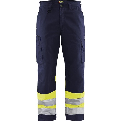 Lett varselbukse med moderne passform og bra slitestyrke. Spikerlommer med ekstra lomme og glidelås. Benlomme med belg, klaff og pennelomme, ekstra lomme, telefonlomme, ID-kortlomme og knebeskyttelseslommer. Vannavvisende finish. C-størrelser kan forlenges til C100 størrelser. Vaskes på 70°C.