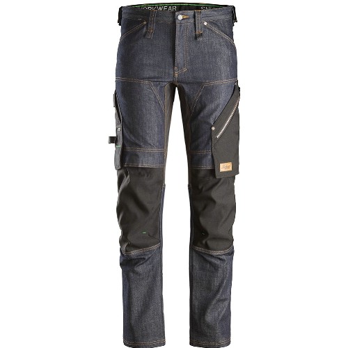 Fleksibel arbeidsbukse i denim med smal passform, utviklet for krevende arbeidsforhold. Slitesterkt denim-materiale kombinert med kroppstilpassede stretchpaneler sikrer slitestyrke og bevegelsesfrihet, og kneputelommer, sikrer pålitelig beskyttelse. I tillegg har arbeidsbuksen verktøyholdere og lårlommer med rom med glidelås. Lårlomme i stretch Cordura med glidelåsrom. Vaskes på 40°C.