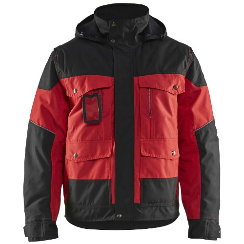 Varmforet vinterjakke i vindtett, vanntett og pustende materiale. Teipede sømmer. Forlenget rygg, justerbar nederkant, belg i ryggen for bedre bevegelighet. Vattert fôr og justerbar, avtakbar hette. Fleecefôret krage. Avtakbar ID-kortlomme. Glidelås i fôret for dekal. Frontlukking med skjult enveisglidelås i plast. Brystlommer med klaff og en sidelomme med glidelås, frontlommer med klaff og sidelommer, innerlommer, hvorav en med telefonlomme. Justerbare ermeender med innvendige mansjetter. Refleksdetaljer foran, bak og på ermene. Vask 40°C.