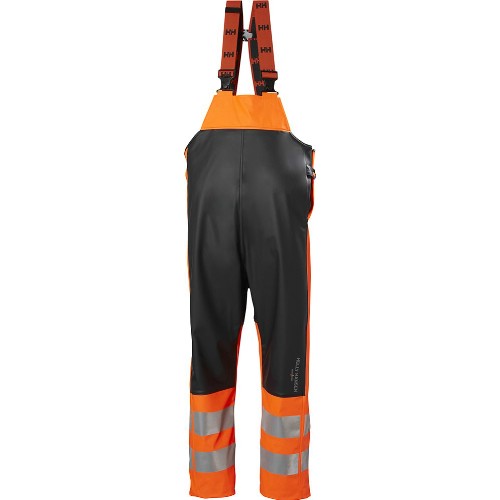 Selebukse i varselfarge med 3M reflekstape. Brystlomme med glidelås. Åpning for hengende lommer. Elastiske seler. Justerbar midje med knapper. Knehøy glidelås langs siden. Justerbar benavslutning med knapper. Vaskes på 40°C.