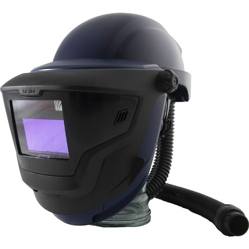 Komplett vernehjelm SR 580 med sveisevisir SR 584, som sammen med den batteridrevne viften SR 500 eller SR 700 og godkjente filtre er en del av Sundströms vifteassisterte åndedrettsvernsystem. Kan også brukes sammen med trykkluftadditiv SR 507, denne kombinasjonen utgjør et pusteapparat med kontinuerlig luftstrøm for tilkobling til trykkluft. Kombinasjonene beskytter mot skadelige gasser/partikler, stråling og sprut ved sveising, skjæring, sliping og lignende arbeid. Designet gjør dem nyttige for arbeid i trange og vanskelig tilgjengelige rom. Utstyret kan brukes som et alternativ til filterbeskyttelse i alle situasjoner der slikt anbefales. Dette gjelder spesielt tungt, varmt eller langvarig arbeid. Beskyttende hjelm med vippbart visir. Beskytter pustesonen og hodet. Justerbar hodeposisjon. Utskiftbar fleksibel pusteslange som kobles til den filterutstyrte viften. Utstyrt med utåndingsventil. Standardfeste for øreklokker. Det positive trykket i hjelmens visir hindrer partikler og andre forurensninger i å komme inn i pustesonen. Flip-up sveisevisiret leveres montert på hjelmen, med sveiseglass EN 10 og beskyttelsesglass i polykarbonat (mål 90x110 mm). Tilbehør i form av automatisk sveiseglass, korreksjonsbriller, nakke- og brystbeskyttelse og slangebeskyttelse er tilgjengelig.