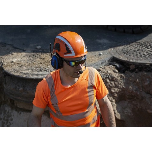 Headset for montering på vernehjelm. Disse headsettene har også en støydempende boom mikrofon, nivåavhengig omgivelseslydfunksjon, push-to-listen funksjon og innebygd FM-radio. Bluetooth MultiPoint for tilkobling til en eller to eksterne enheter. Bluetooth-version 4.2. Du kan også kobles til enheter som en mobiltelefon og en to-veis radio, for håndfri snakking og streaming. Tilkobling til iOS og Android enheter er enkelt med 3M Connected Equipment App som er tilgjengelig fra App Store og Google Play. God lyddemping. Batteritid opptil 78 timer. Dämpningsvärde SNR 30 dB. Leveres med ekstra rosa øreklokker, ekstra hygienesett, mikrofonbeskyttelsesteip og 2 stk 1,5 V AA-batterier.
