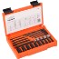 Skrueuttrekker for avbrutte skruer, bolter og tapper i dimensjon M5-M16. Laget av stållegering av høy kvalitet. Svart oksidert overflate. Leveres i plastboks.