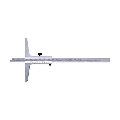 Laget av rustfritt stål. Matt forkrommet skala. Endene på bladet og anslaget er herdet. Skalaen er inndelt i mm og har 1/20 mm nonie. Låsbar, toleranse i henhold til DIN 862. I skinnveske.