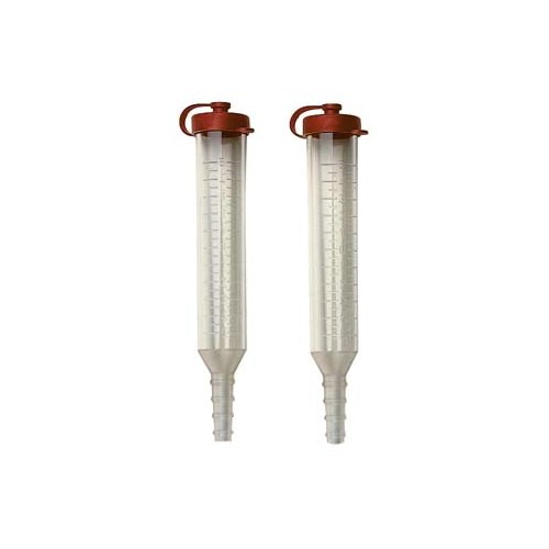Slagfast plastrør med ventilerende topp. Festes til en gjennomsiktig slange og fylles med vann til nullpunktet. For utjevning av ødelagte overflater, f.eks. ved maskinmontering, fundamentering og betongarbeid. Brukes parvis.
