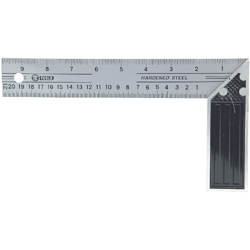 Laget av herdet verktøystål. Gradert i millimeter og tommer.