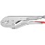 Universal gripetang som holder rund-, profil- og flatmateriale fast. Tangen tåler høy belastning. Med stillskrue og utløsrearm. Med enhåndsbetjening. Høyt spenntrykk med leddutveksling. Tanglegeme: valsestål, høyfast. Gripebakker: krom-vanadin-elektrostål, smidd.