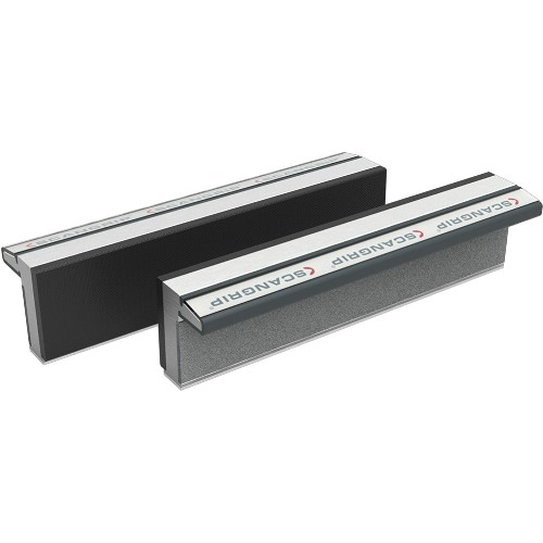 Beskyttelsesbakker i herdet aluminium. Kontaktflate med gummibelegg. Enkel og sikker festing til kjevene på skruestikken takket være kraftige magnetlister på baksiden. Passer til både benk- og maskinskruestikker. Leveres i par.