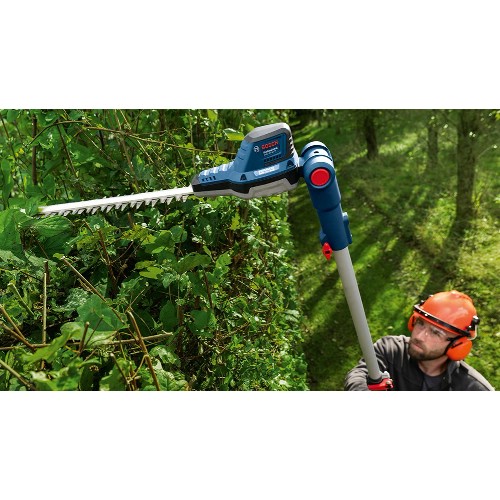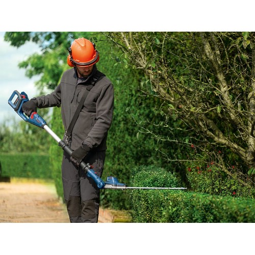 Kraftig hekksaks 18 V Li-Ion med børsteløs motor og 2,5 meter teleskopstang for høye hekker. Justerbart vinklet hode/sverd på 50 cm. Anti-Blocking System hindrer at bladet setter seg fast. Tennene er diamantslipte. Den ytre delen av sagbladet har ekstra skarpe tenner for enklere klipping av tykkere grener. Tannåpning 23,5 mm. Kompatibel med alle batterier og ladere i Bosch Professional 18 V-systemet og AMPShare alliansen.