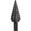 Trinnbor med belegg av aluminiumkromnitrid (AlCrN) som gir lang levetid. Passer for boring i stål og rustfritt stål. Rapid Strike Tip gir bedre sentrering og rask boring uten behov for slag eller forboring av materialet. Spesialutviklet spiss og trinngeometri for problemfri bruk, mindre risiko for fastkjøring ved høye hastigheter. 2 symmetrisk slipte spiraler for jevn og raskere boring. Borens 3-flatsfeste hindrer trinnboret fra å gli inn eller ut av chucken og sikrer at maksimalt dreiemoment overføres fra maskin til tilbehør. Lasergravert størrelsesguide for maksimal holdbarhet.